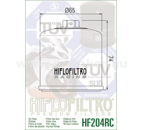 Müszaki extrák: 17 mm-es rögzítö anya a szurö végén a könnyu fel- és leszereléshez. Elöre fúrt lyuk a biztonsági huzalozáshoz (versenypálya elöírás). Megerösített acél ház a maximális nyomásállóság érdekében. Szeleptechnológia a tökéletes tömítésért és visszafolyás gátlásért. Föbb kompatibilis modellek (kivonat): HONDA: CB500 F/X, CBR500R, CB600 Hornet, CBR600RR, CB650R/F, NC700/750, VFR800, CBR1000RR Fireblade, CRF1000/1100 Africa Twin, VFR1200, CB1300, GL1800 Gold Wing. KAWASAKI: ZX-6R, ER-6n/f, Z650, Z750, Z800, Z900, Z1000, Ninja 1000, ZX-10R, GTR1400, ZZR1400. YAMAHA: YZF-R6, MT-07, Tracer 7, MT-09, Tracer 9, XSR900, MT-10, YZF-R1, XT1200Z Super Tenere, FJR1300. TRIUMPH: Daytona 675, Street Triple 675/765, Tiger 800/900/1200, Bonneville T100/T120. MV AGUSTA: F3 675/800, Brutale 675/800, F4 1000. Helyettesíthetö gyári (OEM) cikkszámok: Honda: 15410-MCJ-000, 15410-MFJ-D01 Kawasaki: 16097-0002, 16097-1070 Yamaha: 5GH-13440-20, 5GH-13440-50, 1WD-E3440-00 Triumph: T1210444, T1218001 Megjegyzés: A HF204RC a hagyományos HF204 versenyváltozata, amely minden olyan típushoz jó, ahol a sima HF204-et használják. Ideális választás pályanapokhoz és utcai sportmotorokhoz egyaránt. Egyéb kód:HF204RC |