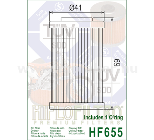 A HifloFiltro HF655 a világ elsö és egyetlen TÜV jóváhagyással rendelkezö motorkerékpár olajszurö családjának tagja. A prémium minöségu alapanyagok és a precíz gyártási folyamat garantálja, hogy a szurö mindenben megfelel a gyári (OEM) elöírásoknak, biztosítva a motor hosszú élettartamát.