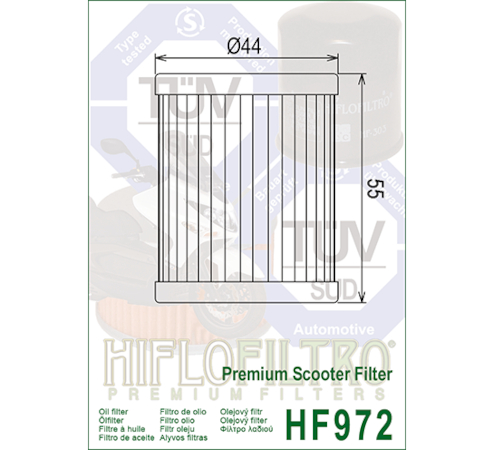 A HifloFiltro HF972 a világ elsö és egyetlen TÜV jóváhagyással rendelkezö motorkerékpár olajszurö családjának tagja. Ezt a prémium szuröt kifejezetten nagy köbcentis robogókhoz fejlesztették ki, hogy kiváló szurési hatékonyságot és maximális motorvédelmet biztosítson.